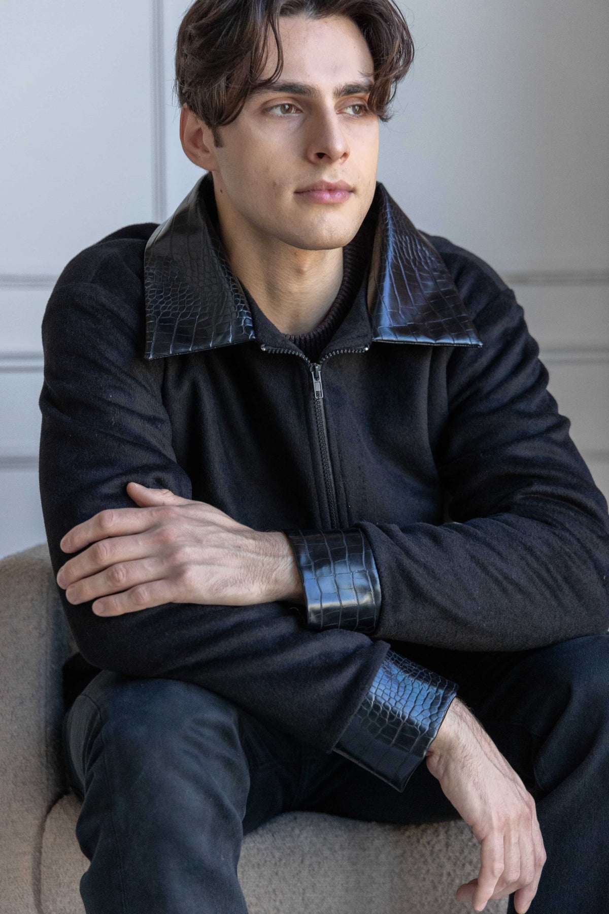 Fabric : 30% Wool, 70% Polyester Leather : 100% PU