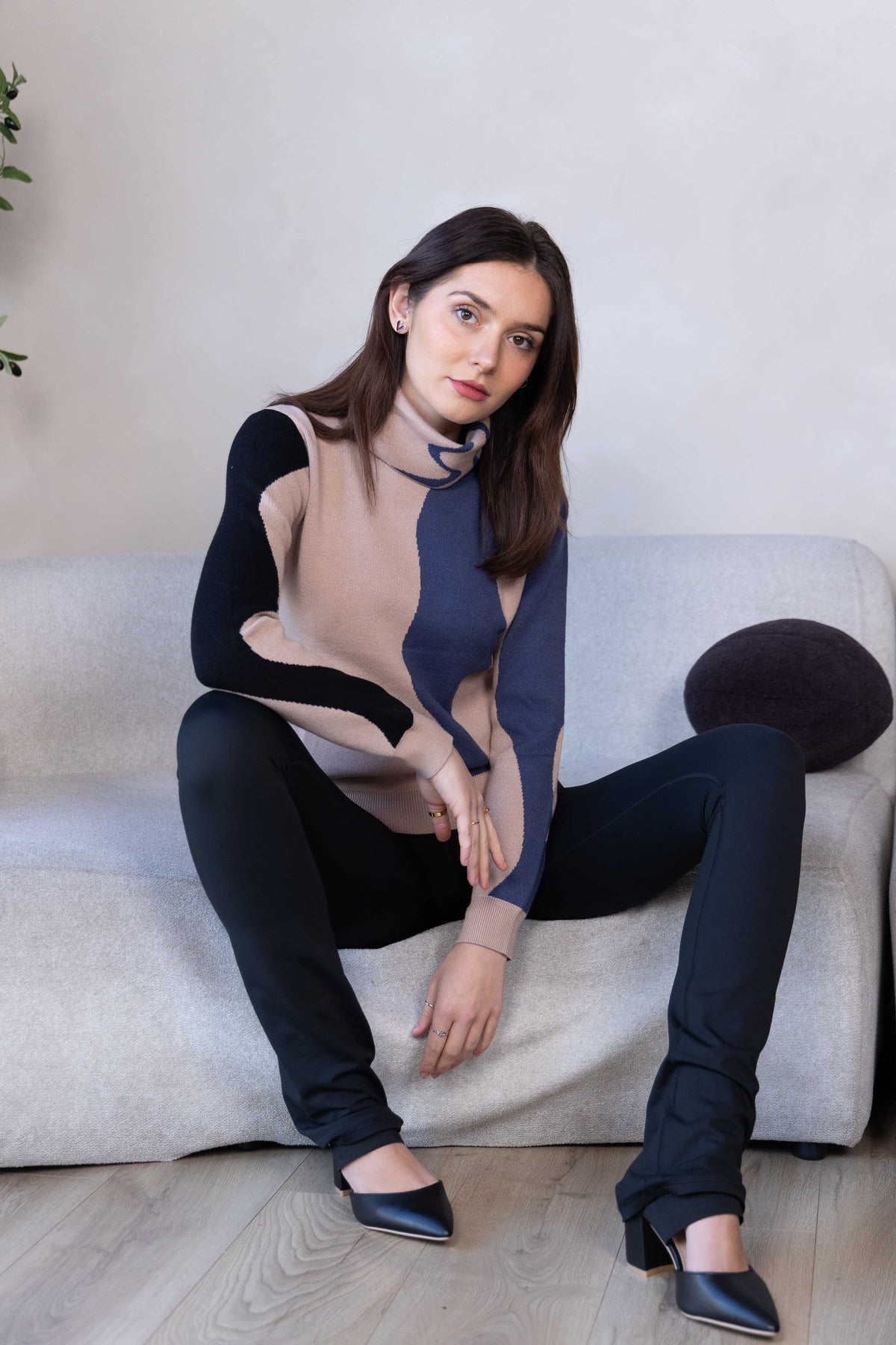 This turtleneck knitwear offers a modern design that blends style and comfort. The rich, deep color adds a bold touch to your wardrobe, while the slim fit and long sleeves create a clean, flattering look. The soft fabric ensures comfort throughout the day, whether layered under jackets or worn on its own.The simple yet contemporary design pairs easily with jeans, skirts, or trousers, making it a great choice for both casual outings and office wear. A practical and stylish piece, this knitwear brings warmth and a sleek aesthetic to your collection.